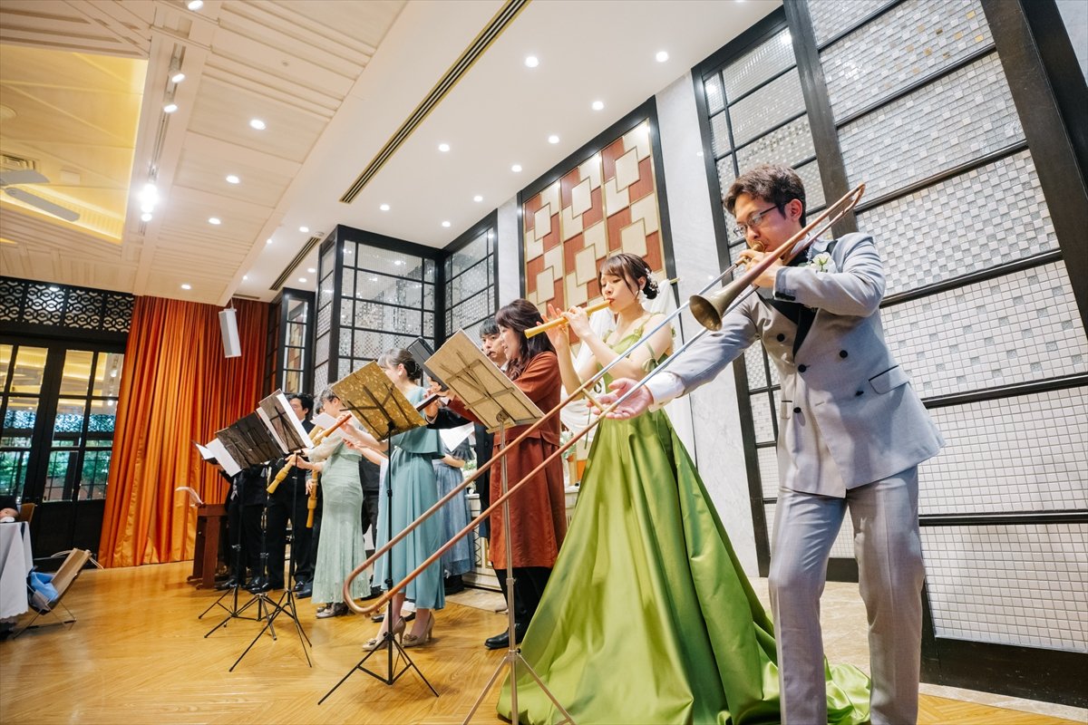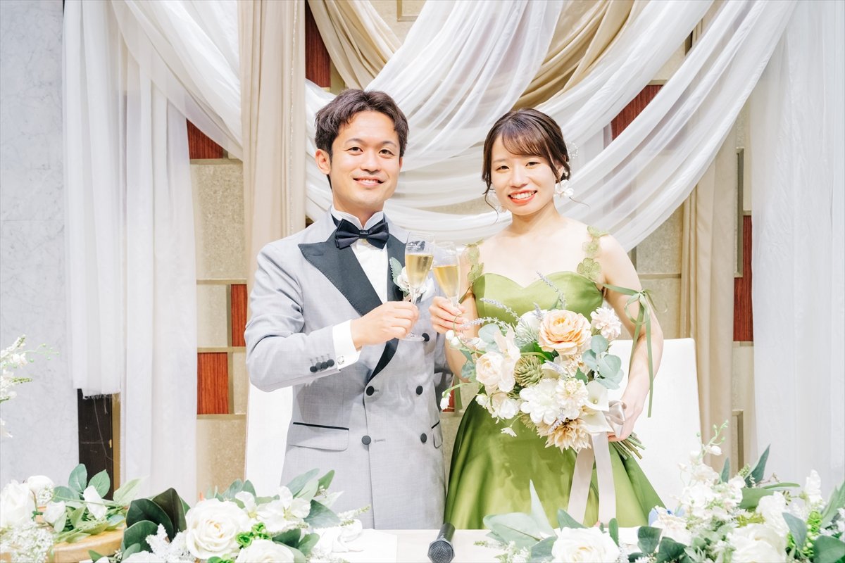 当日は自分たちらしい披露宴をすることができ、ゲストにも喜んでもらうことができました。最初は「神前式での挙式後に食事会をしたい」という小さな希望で始まりましたが、最終的にマンダリンアリュールでの素敵な披露宴を行い、想像していた以上のことができてとても満足しています。担当プランナーさんからの”食事をゲストの席で一緒にする”という素敵なアイデアも嬉しかったです。また、マンダリンアリュールは料理がとても美味しいので、デザートビュッフェや鯛めしビュッフェもゲストから好評で、楽しく過ごせる時間になって良かったです!