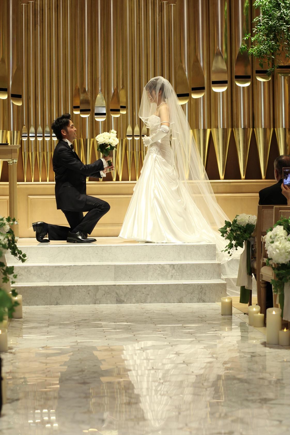 新郎がゲストからバラを受け取った際、今までの思い出が頭に浮かび早くも泣きそうになりましたが、そこは我慢。